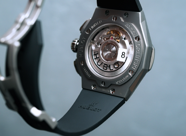 The HUB1155 movement features a column wheel and vertical clutch mechanism, ensuring precise and smooth operation of the chronograph functions. The chronograph pushers are seamlessly integrated into the case, allowing for intuitive operation.